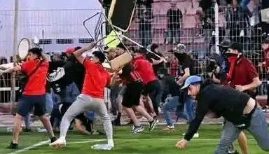 جانب من اشتباكات بين انصار أولمبيك آسفي واتحاد العاصمة في المدرجات قبل انطلاق صافرة البداية.. المباراة لم…