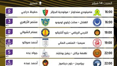 ⚽ نهضة بركان × الهلال السوداني الذهاب: 13 – 14 – 15 مارس (في المغرب) الإياب: 20…