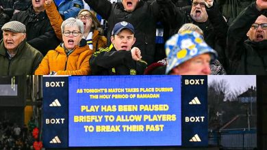 جماهير ليدز يونايتد أطلقت صافرات استهجان عنيفة بسبب إيقاف مباراتهم ضد مانشستر سيتي في الدوري الإنجليزي خلال آذان المغرب، للسماح…