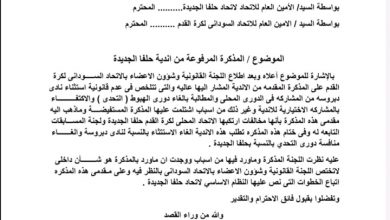 تسلمت الأمانة العامة لإتحاد كرة القدم حلفا الجديدة اليوم الثلاثاء، خطاب من اللجنة القانونية بالإتحاد السودانى لكرة…