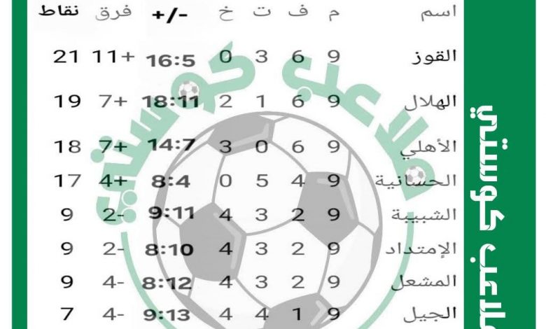 * القوز في الصدارة بـ21 نقطة .. والشعب في الذيلية بـ6 نقاط .