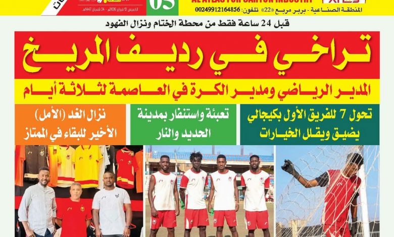 من عناوين (صحيفة مريخابى) الصادرة اليوم الخميس