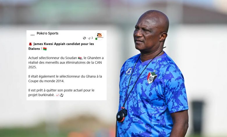 فجّرت منصة Poko’o Sports البوركينية مفاجأة مدوية بعدما كشفت عن دخول المدرب الغاني جيمس كويسي أبياه، المدير الفني الحالي لـمنتخبنا الوطني لكرة القدم، دائرة الترشيحات لتولي تدريب منتخب بوركينا فاسو لكرة القدم خلال المرحلة المقبلة.