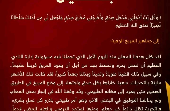 بيان مهم من رئيس لجنة تسيير نادي المريخ