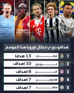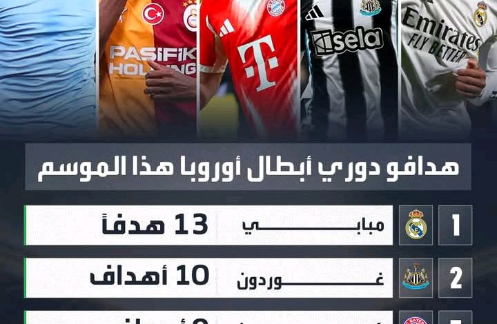 مبابي ينفرد بصدارة هدافي دوري ابطال اوروبا