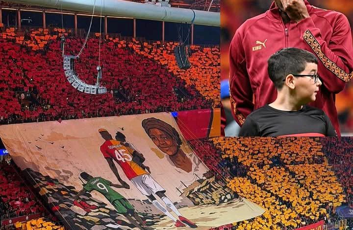جماهير غلطة سراي قامت بعمل لوحة تحمل صورة والدته المتوفية كنوع من التقدير و الوفاء..