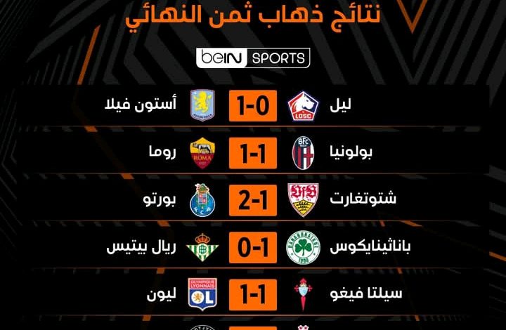 نتائج مواجهات ذهاب ثمن نهائي الدوري الأوروبي