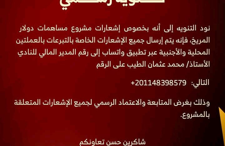+201148398579 الأستاذ محمد عثمان الطيب المدير المالي للنادي