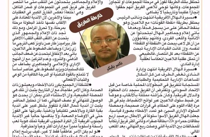 •مسيرة الهلال الأفريقية انتهت كما ظلت تنتهي على الدوام، والإدارة تعاكس الطاقم الفني في تكملة نواقص الفريق، وتواصل في نهج يجعل الهدف الرئيسي استثمارياً وليس تنافسياً، بالبحث عن الصفقات زهيدة الثمن، يمكن أن تنتج في البدايات لكنها لن تكون بحجم التحدي في مراحل الحسم التي تحتاج لمواصفات مختلفة، وفي هذه النقطة لا بد من الإقرار أن إدارة الهلال ناجحة في سياستها هذه وفي إدارة الهلال بطريقة من (دقنه وأفتله) عبر حافز “كاف” وعائدات تسويق بعض نجوم الفريق.