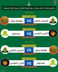 إليكم برنامج مباريات ذهاب واياب دور نصف النهائي دوري أبطال إفريقيا