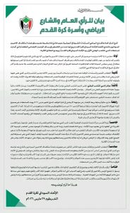 بيانٌ من الاتحاد السوداني للرأي العام والشارع الرياضي وأسرة كرة القدم
