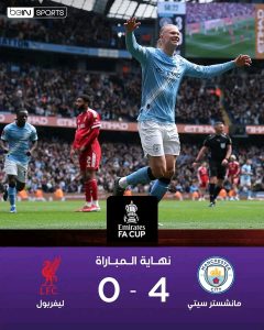 مانشستر سيتي يصعد إلى نصف النهائي من الاتحاد الانجليزي عقب فوزه الكبير على ضيفه ليفربول بأربعة أهداف دون رد في الدور ربع النهائي.