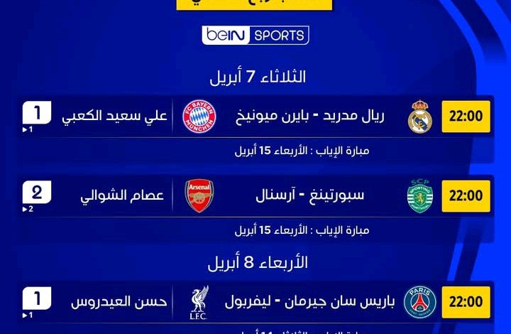 تعرفوا على مواعيد مباريات ذهاب ربع نهائي دوري أبطال أوروبا