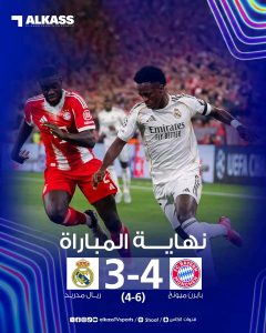 بايرن ميونيخ يهزم ريال مدريد برباعية ويتأهل الى نصف نهائي ابطال اوروبا