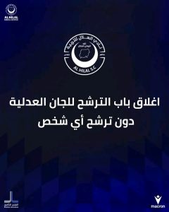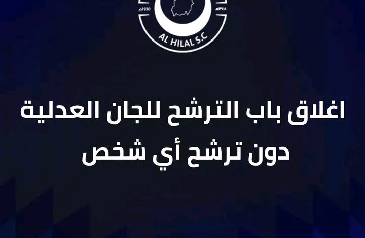 أغلق اليوم الجمعة باب الترشح للجان العدلية في الهلال دون ترشح أحد..