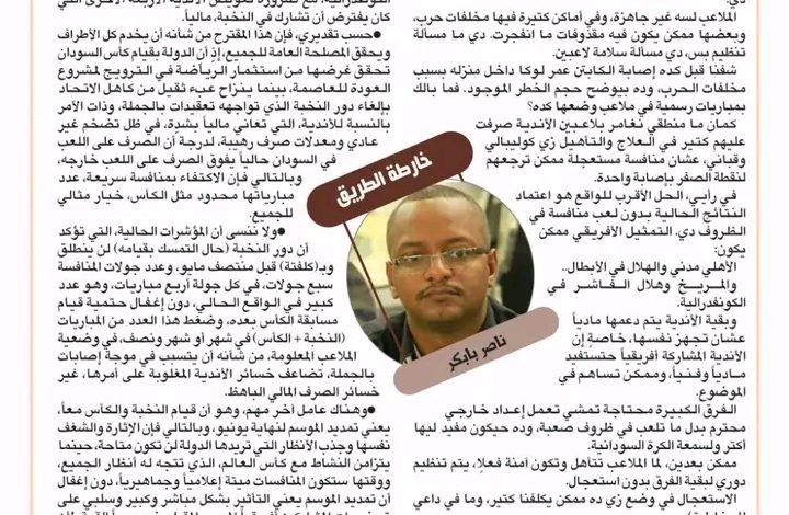 الفرق الكبيرة محتاجة تمشي تعمل إعداد خارجي محترم بدل ما تلعب في ظروف صعبة، وده حيكون مفيد ليها أكتر ولسمعة الكرة السودانية.