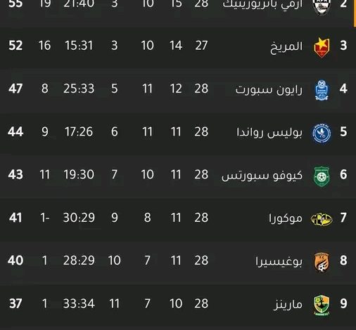 ترتيب الدوري الرواندي بعد فوز المريخ بثلاثية