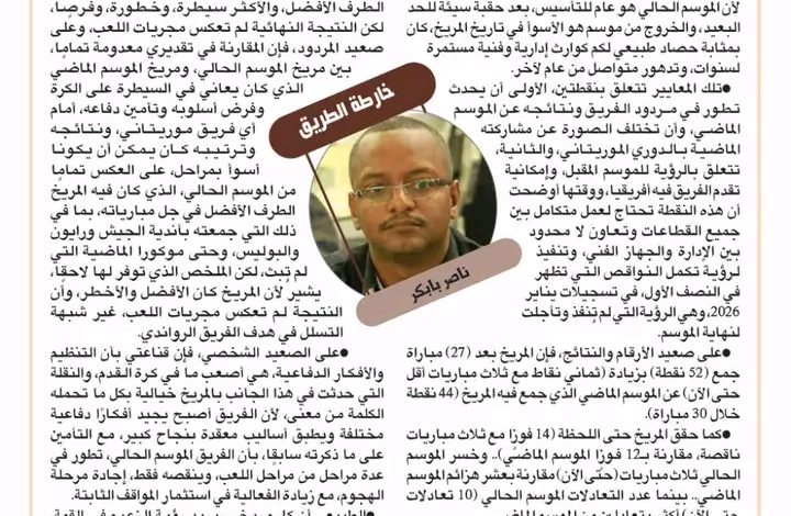 – تلك المعايير تتعلق بنقطتين، الأولى أن يحدث تطور في مردود الفريق ونتائجه عن الموسم الماضي، وأن تختلف الصورة عن مشاركته الماضية بالدوري الموريتاني، والثانية تتعلق بالرؤية للموسم المقبل، وإمكانية تقدم الفريق فيه أفريقيا، ووقتها أوضحت أن هذه النقطة تحتاج لعمل متكامل بين جميع القطاعات وتعاون لا محدود بين الإدارة والجهاز الفني، وتنفيذ لرؤية تكمل النواقص التي تظهر في النصف الأول، في تسجيلات يناير 2026، وهي الرؤية التي لم تنفذ وتأجلت لنهاية الموسم.