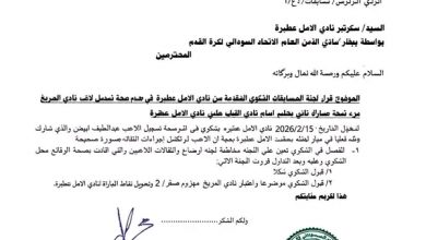 كما شمل القرار فرض غرامة مالية على النادي تبلغ خمسة ملايين جنيه سوداني، على أن يتم سدادها خلال مدة لا تتجاوز 72 ساعة من تاريخ صدور القرار.