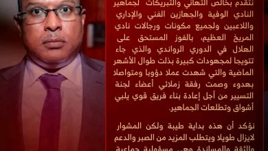 وقال إن المريخ أصبح يلعب في بربر وعطبرة دون وجود يُذكر لأنصاره، واصفًا ذلك بظاهرة غير مسبوقة، وموجّهًا دعوة صريحة لجمهور المريخ العظيم للعودة إلى المدرجات ومؤازرة الفريق.