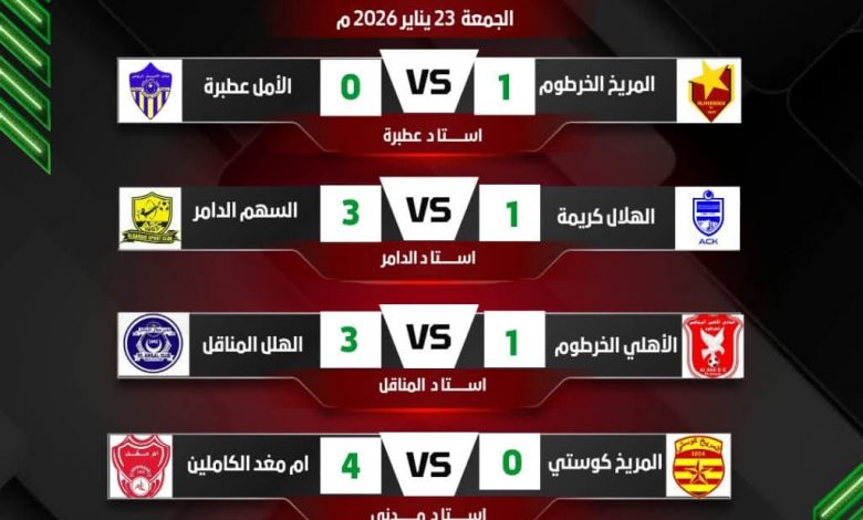 من نتائج الممتاز.. سقوط الهلال بثلاثية.. وأم مغد يكتسح المريخ