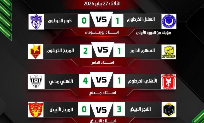 نتائج جميع المباريات التي جرت اليوم في الممتاز