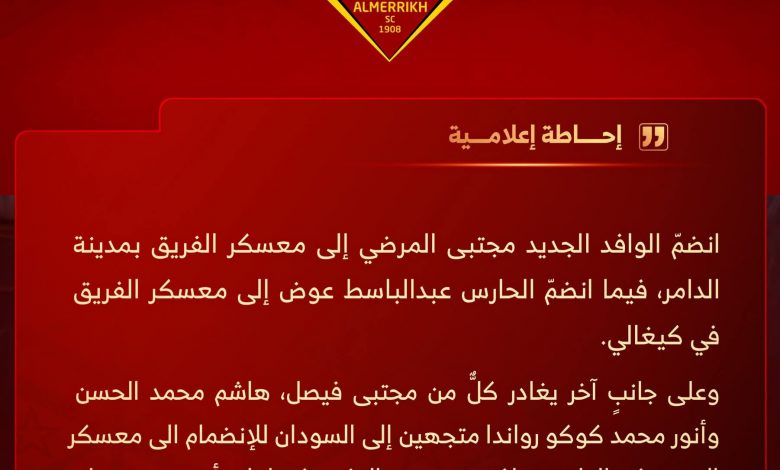 انضم إلى معسكر المريخ في الدامر الوافد الجديد مجتبى المرضي..