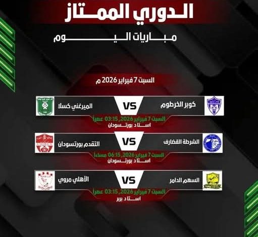 تقام اليوم السبت ثلاثة مباريات في الدوري السوداني الممتاز..