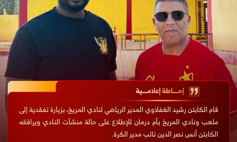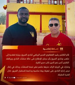 سجل رشيد الغفلاوي المدير الرياضي لنادي المريخ زيارة إلى الاستاد ومنشآت النادي بأم درمان..