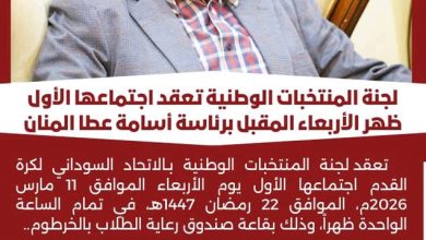 تعقد لجنة المنتخبات الوطنية بـالاتحاد السوداني لكرة القدم اجتماعها الأول يوم الأربعاء الموافق 11 مارس 2026م، الموافق 22 رمضان 1447هـ،…