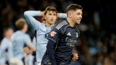 سجل فيديريكو فالفيردي هدفاً في آخر لحظات المباراة ليمنح فريقه ريال مدريد فوزاً قاتلاً على مضيفه سلتا فيغو 2-1 ويواصل…