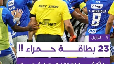 ما حدث في مباراة أتلتيكو مينيرو ضد كروزيرو كان جنونيًا مشاجرة بين اللاعبين انتهت بقرار الحكم بطرد 23…